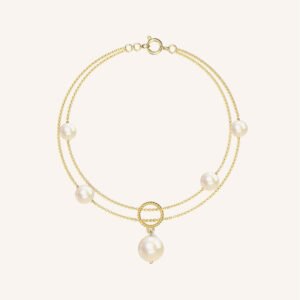 Double Crystal Pearl Ring Gold Plated Open Earring